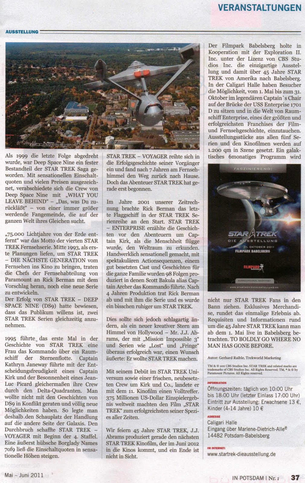 Diese Beilage fand ich heute in meiner Tagespresse, den Potsdamer Neuesten Nachrichten. Im Inneren findet sich ein kurzer Abriss zur Entwicklung des Star Trek Universums und weitere Details zu den Ausstellungsstücken der am kommenden Sonntag in Babelsberg beginnenden Star Trek Ausstelung. Leider wird sich ein großer Teil unserer Tafelrunde zu diesem Zeitpunkt in Düsseldorf bei der FedCon befinden. Verfaßt wurde der Artikel übrigens von Gerhard Raible, dem Kopf von Trekworld Marketing. Diese haben anscheinend das komplette Marketing dieser Ausstellung für den Filmpark übernommen. Bin mal gespannt, ob wir Herrn Raible trotzdem auf der FedCon bei seinen berühmt-berüchtigten Foyerverkaufsaktionen