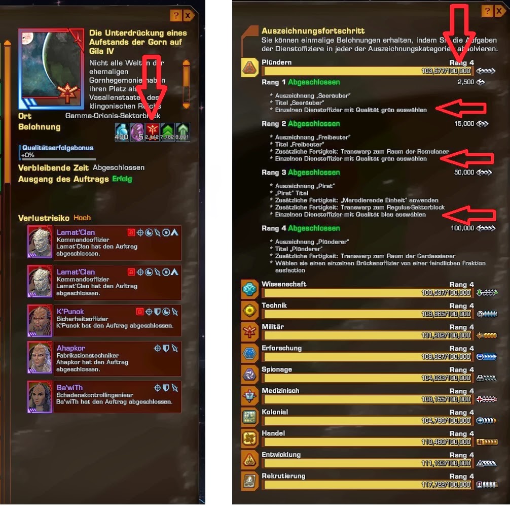 Es kommen also bei den insgesamt 11 Kategorien (Wissenschaft, Technik, Militär,...) 22 grüne, 11 blaue und 11 lilane Doff zusammen. Zusätzlich gibts bei Diplomatie/Plünderung einen BOFF der feindlichen Fraktion. Mit Stufe 1 und 2 jeweils einen grünen, bei 3 schon 1xblau und bei Stufe 4 dann einen lilanen. Allerdings gebe ich jetzt keine Vorschläge was zu nehmen ist. Das sei jedem selbst überlassen und sollte nach Bedarf ausgewählt werden. Wobei ich die grünen als nicht so wichtig erachte, sondern eher bei blau und lila eine Überlegungsminute empfehle.